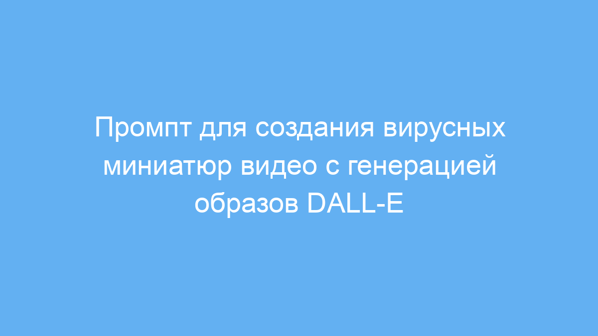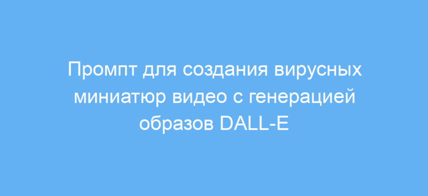 Основная проблема, которую решает этот промпт — это создание креативных, выделяющихся и трендовых визуалов для видео. Промпт помогает сформулировать точные задания для нейросети DALL-E, которая генерирует уникальные изображения для миниатюр. Вместе с тем промпт содержит идеи и объяснения, почему выбранные элементы будут работать на психику зрителя и стимулировать заинтересованность.
