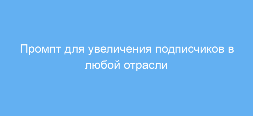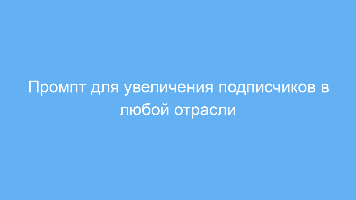 Промпт помогает получить актуальные рекомендации по увеличению подписчиков, учитывая конкретную отрасль и ваш опыт. Вы просто указываете категорию отрасли, а нейросеть предлагает варианты, которые уже приносят результат в данной сфере.