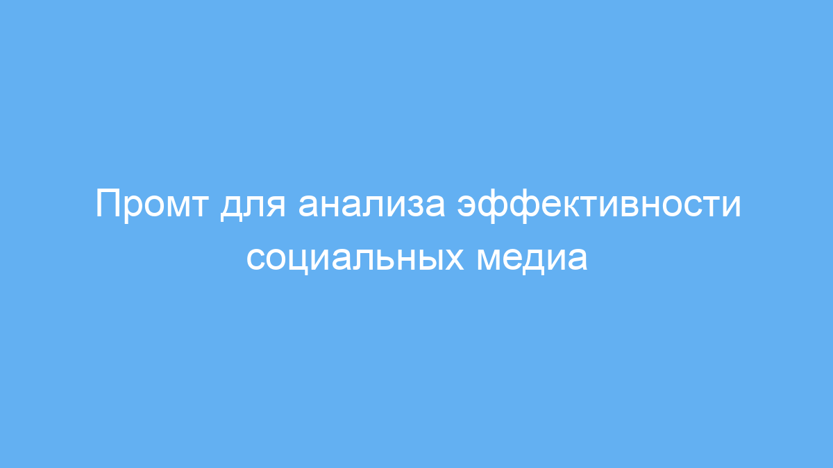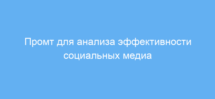 Использование этого промта позволяет быстро получить профессиональный анализ эффективности продвижения в социальных медиа. Такой подход экономит время и помогает увидеть новые пути для роста бизнеса или улучшения маркетинговой стратегии.