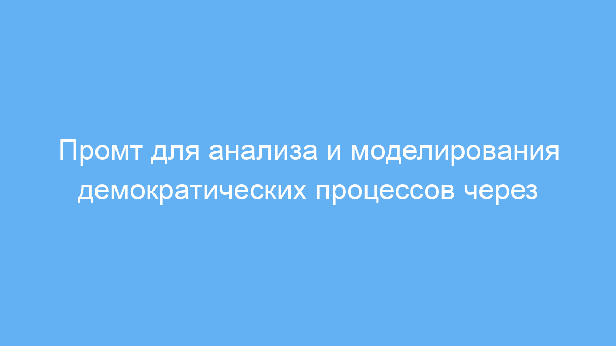 Промт решает задачи анализа поведения избранных представителей в реальном времени и помогает понять, как технологии могут улучшить прозрачность и демократию через так называемую «уберизацию» политической сферы. Это полезно для изучения новых форм социальной активности и разработки приложений с элементами «earn to vote» — когда пользователь получает бонусы за участие в политическом процессе.