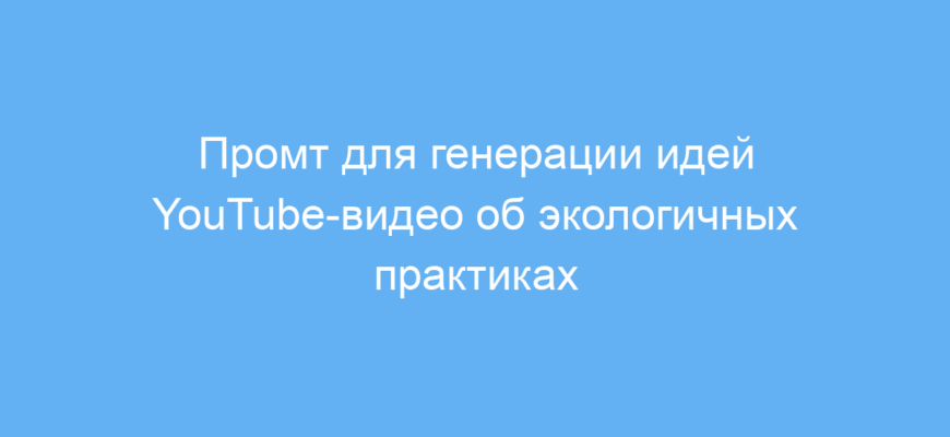 Представь, что ты эксперт по YouTube-видео. Предоставь интересные и хорошо проработанные идеи тем для видео на заданную тему и ключевое слово. Убедись, что контент актуален, информативен и оптимизирован под интересы аудитории и поисковые системы. Тема для видео: экологичные практики и устойчивый образ жизни. Ключевые слова для ранжирования: экологичные практики, зеленый образ жизни, советы по нулевым отходам. |