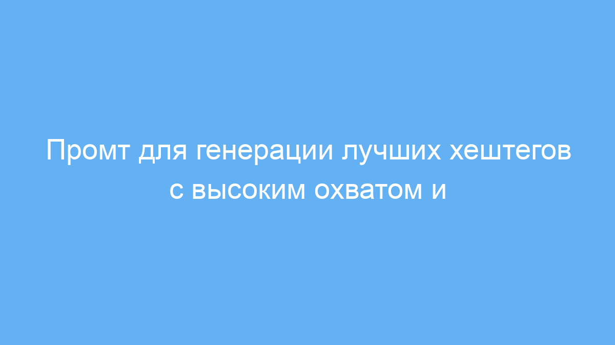 Этот промт создан для маркетологов, блогеров, SMM-специалистов и всех, кто ведёт Instagram-аккаунты и хочет повысить охват и вовлечённость своих публикаций. В условиях высокой конкуренции подобрать эффективные хештеги вручную сложно: многие используют слишком общие или слишком редкие теги. Наш промт помогает выбрать именно те хештеги, которые привлекут максимальную аудиторию и увеличат активность пользователей.