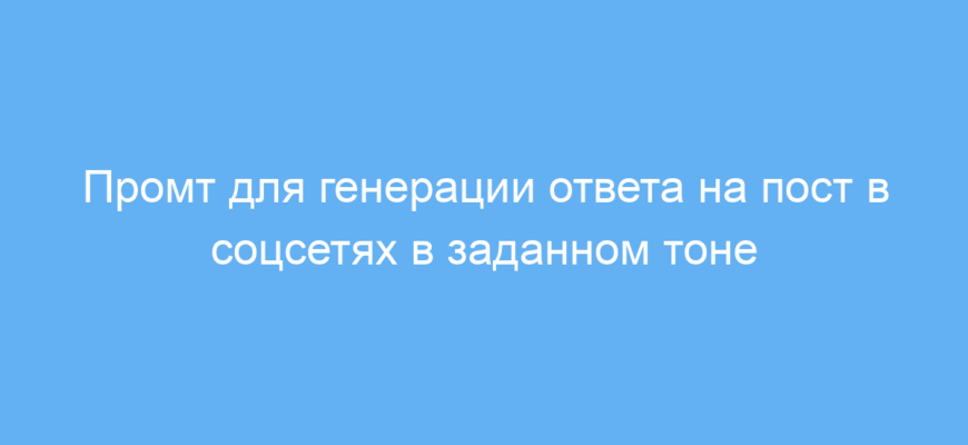 Промт позволяет указать конкретную социальную платформу, содержимое поста, а также желаемый тон ответа и позицию — согласиться или не согласиться с сообщением. В результате нейросеть формирует текст, который подходит для быстрого и корректного взаимодействия с аудиторией. Это упрощает создание продуманных, аккуратных и эмоционально выверенных комментариев под разными постами.