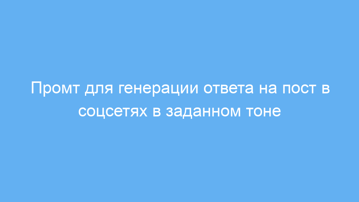 Этот промт предназначен для пользователей, которые хотят автоматически создавать ответы на посты в социальных сетях. Он поможет сэкономить время при ведении онлайн-коммуникации, репутационного менеджмента или маркетинговых кампаний. Особенно полезен для маркетологов, специалистов по соцмедиа, блогеров и сотрудников служб поддержки.