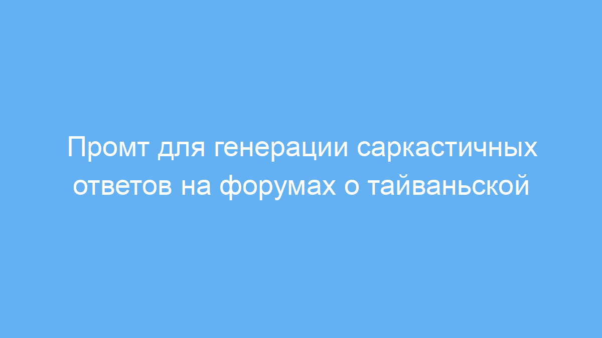Промт помогает быстро создавать остроумные и провокативные ответы для поддержки продвижения тайваньской жареной курицы в онлайн-дискуссиях. Это экономит время на придумывание реплик, повышает вовлечённость аудитории и выделяет продукт среди конкурентов с помощью креативного сарказма.