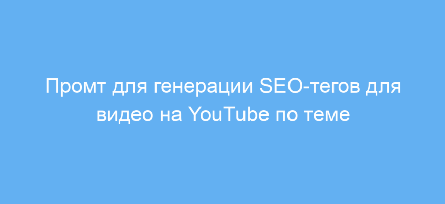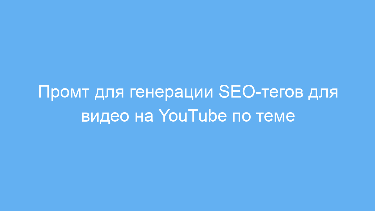 Промт автоматически генерирует список ключевых слов и фраз, отражающих содержание и контекст видео. Он учитывает SEO-аспекты, чтобы сформированные теги были популярны и релевантны, а общая длина тегов не превышала 400 символов, что оптимально для YouTube. Это экономит время и улучшает качество продвижения видео.