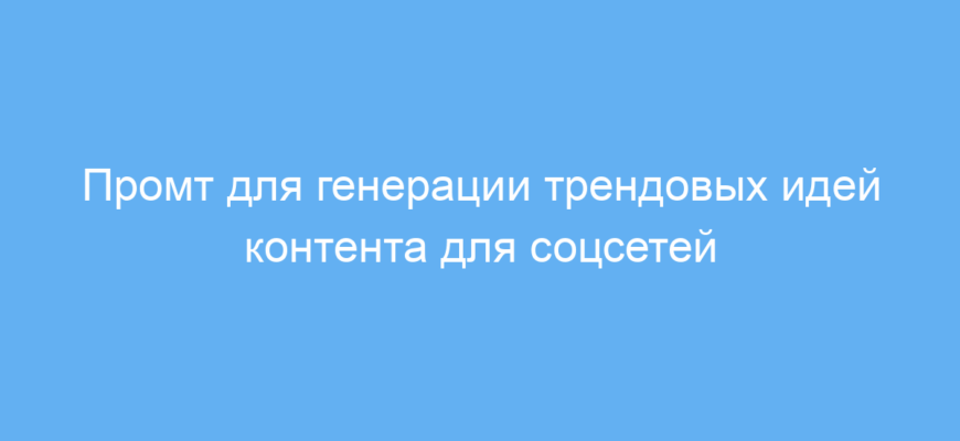 Использование данного промта значительно экономит время и ресурсы на генерацию идей для соцсетей. С его помощью вы всегда будете в курсе трендов, лучше поймёте свою аудиторию и сможете создавать более эффективный и уникальный контент.