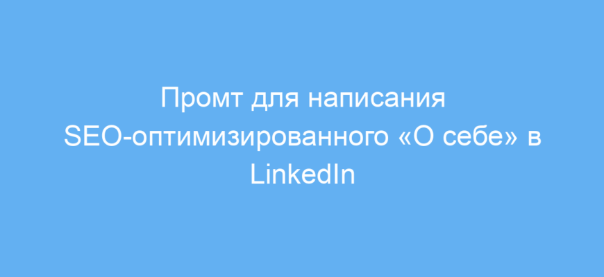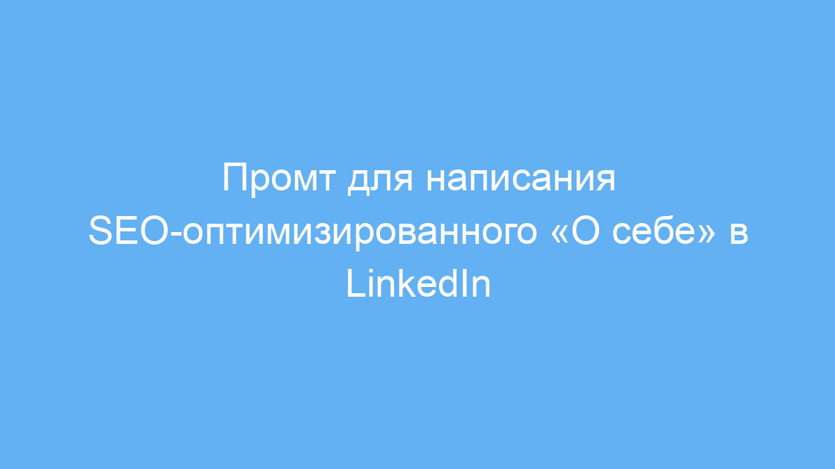 Использование данного промта значительно ускорит создание качественного и SEO-оптимизированного описания «О себе» для LinkedIn. Вы получите профессиональный, структурированный текст, адаптированный под вашу должность и стиль, что повысит привлекательность профиля в профессиональной среде.