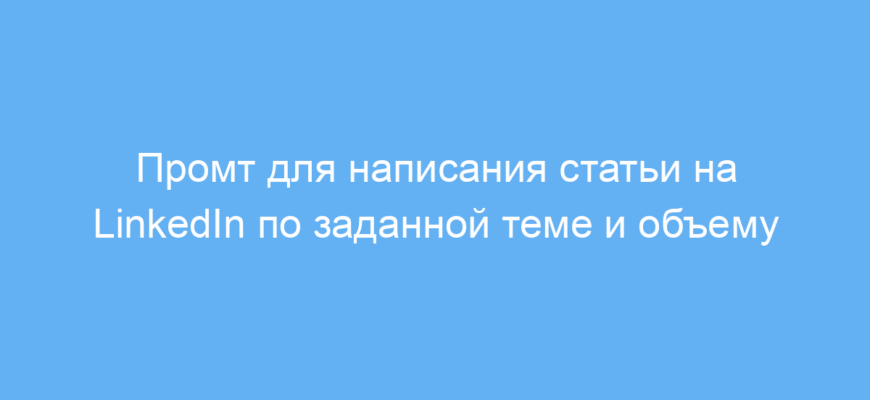 Работает промт следующим образом: вы указываете тему статьи и желаемый объем в словах, нейросеть получает эти параметры и создаёт развернутый и логичный текст, подходящий для публикации на LinkedIn. Благодаря чётким переменным, вы точно контролируете содержание и длину статьи.