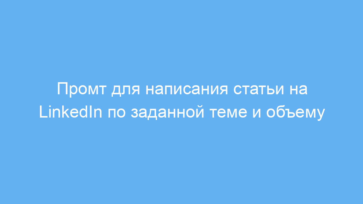 Промт значительно ускоряет процесс создания качественной статьи для LinkedIn, экономит время и помогает избежать ошибок новичков в составлении текста. С его помощью вы получите готовый к публикации материал, соответствующий заданной теме и объему.
