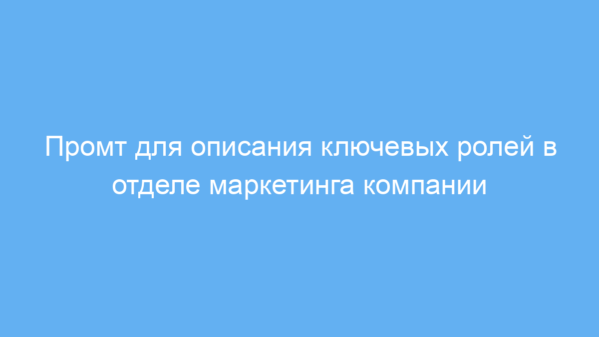 Использование этого промта позволяет быстро и структурированно получить четкое описание ключевых ролей в отделе маркетинга. Это экономит время, улучшает понимание функций внутри команды и помогает адаптировать описание под специфику бизнеса.
