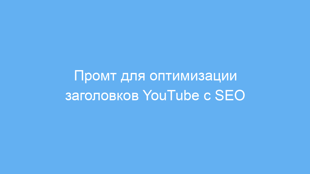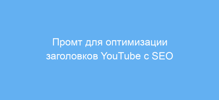 Этот промт экономит время и силы на разработку заголовков к видео на YouTube. Он помогает повысить кликабельность и лучше позиционировать видео в поиске за счёт SEO-ключевых слов. Благодаря структурированному подходу ваши заголовки станут привлекательнее для зрителей и алгоритмов платформы.