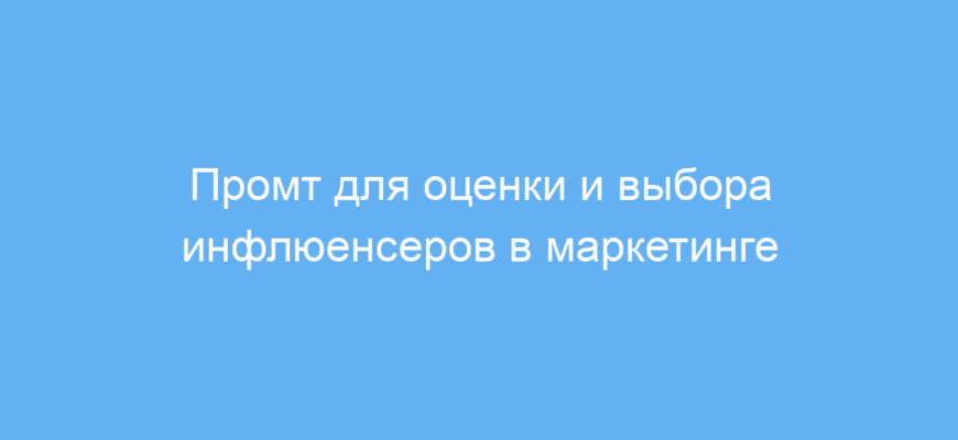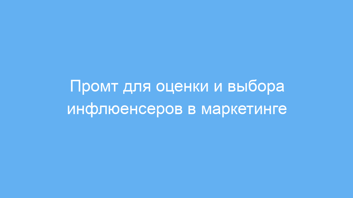Этот промт облегчает сложный процесс выбора инфлюенсеров для продвижения. Он помогает структурировать данные, объективно оценивать кандидатов и принимать взвешенные решения, тем самым повышая эффективность маркетинговых усилий и экономя время.