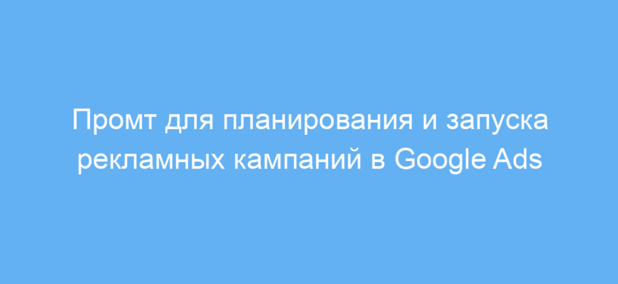 Этот промт предназначен для маркетологов, предпринимателей и специалистов по рекламе, которые хотят быстро и качественно планировать эффективные рекламные кампании в Google Ads. Он помогает структурировать процесс запуска рекламы, исключая ошибки и упрощая сложные этапы.