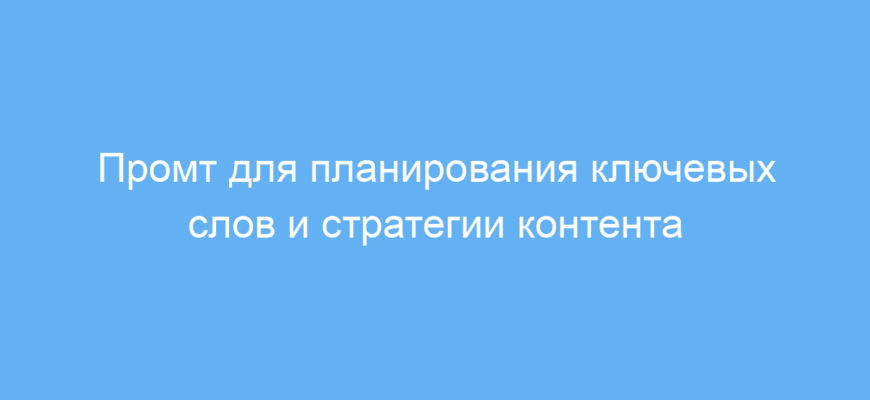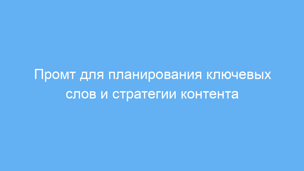 Промт помогает решить важную задачу: подобрать релевантные ключевые слова для улучшения видимости сайта в поисковых системах и составить детальный план, как правильно использовать эти слова в различных типах контента. Это экономит время и повышает эффективность продвижения.