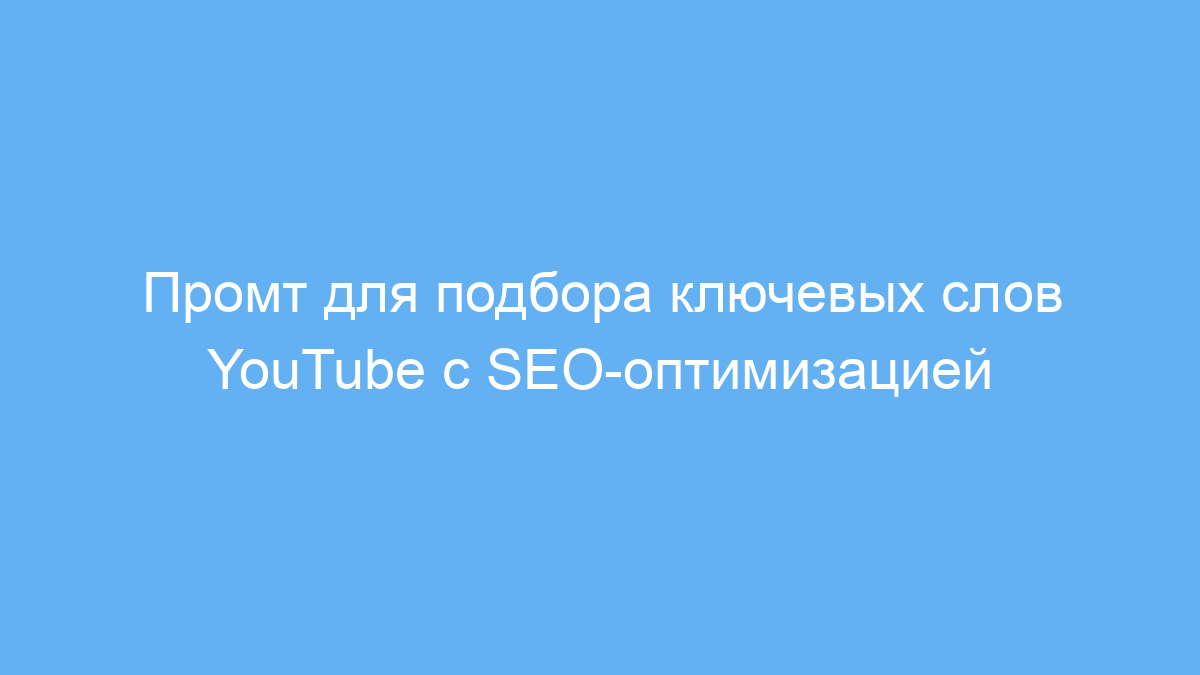 Использование промта значительно экономит время на поиске и подборе ключевых слов для продвижения видео на YouTube и Google Видео. Вы получает структурированный быстро применимый список ключевых слов для разных целей — от массовых запросов до нишевых длиннохвостых тематик и видеоориентированных ключей.
