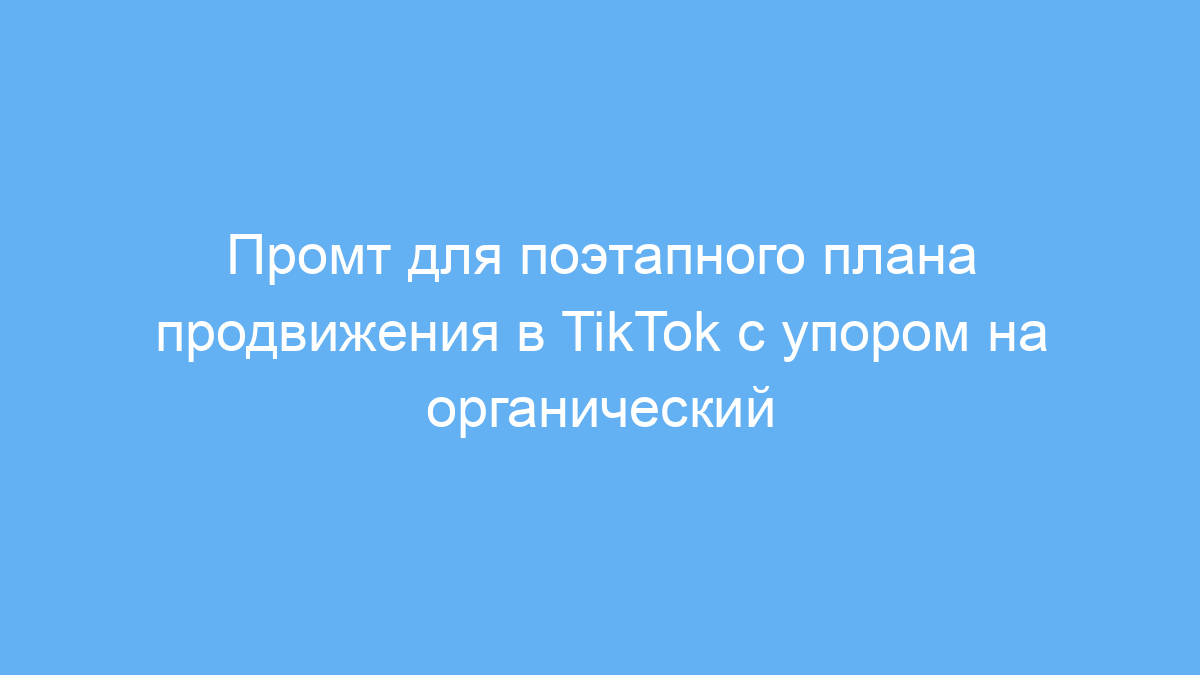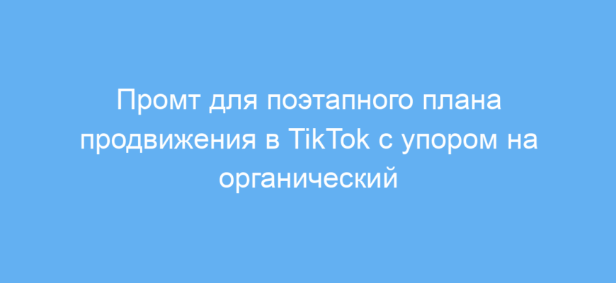 Главное преимущество: быстро получить подробный и проверенный план продвижения TikTok с акцентом на органику и качество контента.