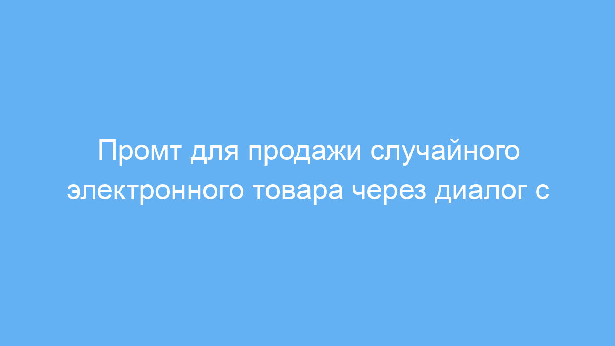 Этот промт создан для тех, кто хочет автоматизировать процесс продажи электронных товаров с помощью нейросети. Он идеально подходит продавцам, маркетологам и разработчикам чат-ботов, которым нужно эффективно презентовать товары и убеждать покупателей.