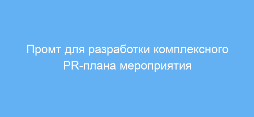 Промт упрощает работу, беря на себя структурирование информации и учет важных факторов, как цели мероприятия, целевая аудитория, конкуренция и бюджет. Благодаря этому пользователю не нужно собирать все данные вручную и думать, как связать разные элементы PR-стратегии.
