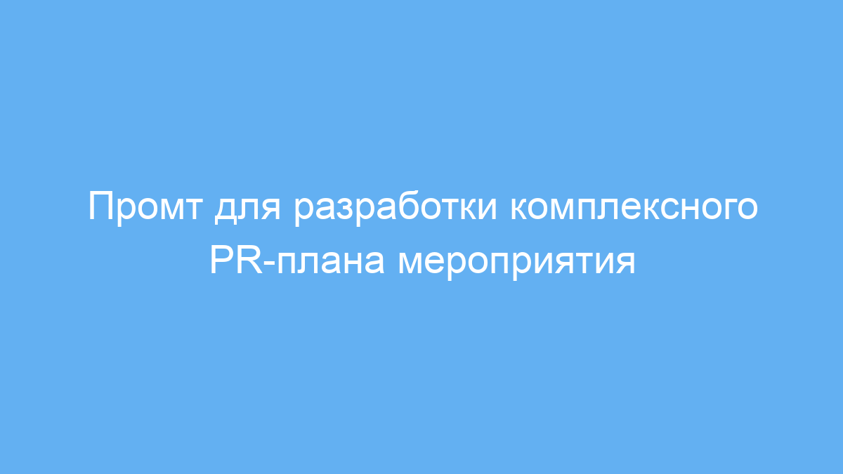 Этот промт экономит время и силы на разработку продуманного PR-плана. Он учитывает ключевые аспекты мероприятия и помогает получить структурированный, детальный и профессиональный план продвижения без необходимости глубоко разбираться в нюансах PR самостоятельно.