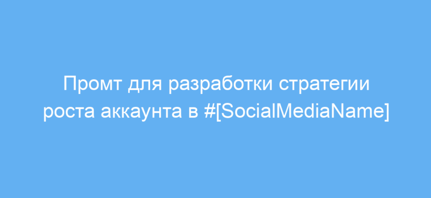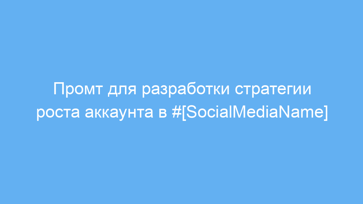 Данный промт создан для владельцев личных и брендовых аккаунтов в социальных сетях, которые хотят увеличить число подписчиков целевым и бесплатным способом. Если вы ведёте аккаунт в #[SocialMediaName], занимаетесь продвижением в нише #[YourNiche], и имеете текущую аудиторию из #[YourCurrentNumberOfFollowers] подписчиков, этот промт поможет построить подробный план по достижению цели — увеличить подписчиков до #[TargetNumberofFollowers] за #[NumberofDay] дней.