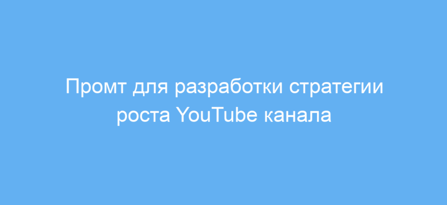 Использование данного промта существенно экономит время на разработку стратегии развития YouTube канала. Он формирует чёткий и структурированный план под ваши конкретные задачи, помогает систематизировать действия и повысить эффективность продвижения, увеличения зрительской базы и доходов.