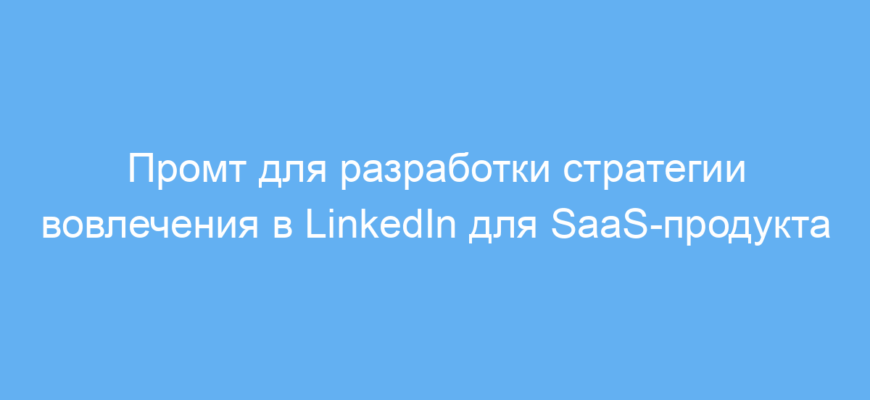 Этот промт предназначен для владельцев и маркетологов SaaS-продуктов, которые хотят создать эффективную стратегию взаимодействия с целевой аудиторией в LinkedIn. Особенно он полезен тем, кто работает самостоятельно и одновременно занимает другую профессиональную должность.