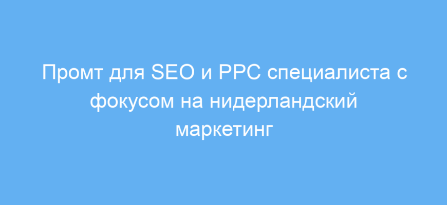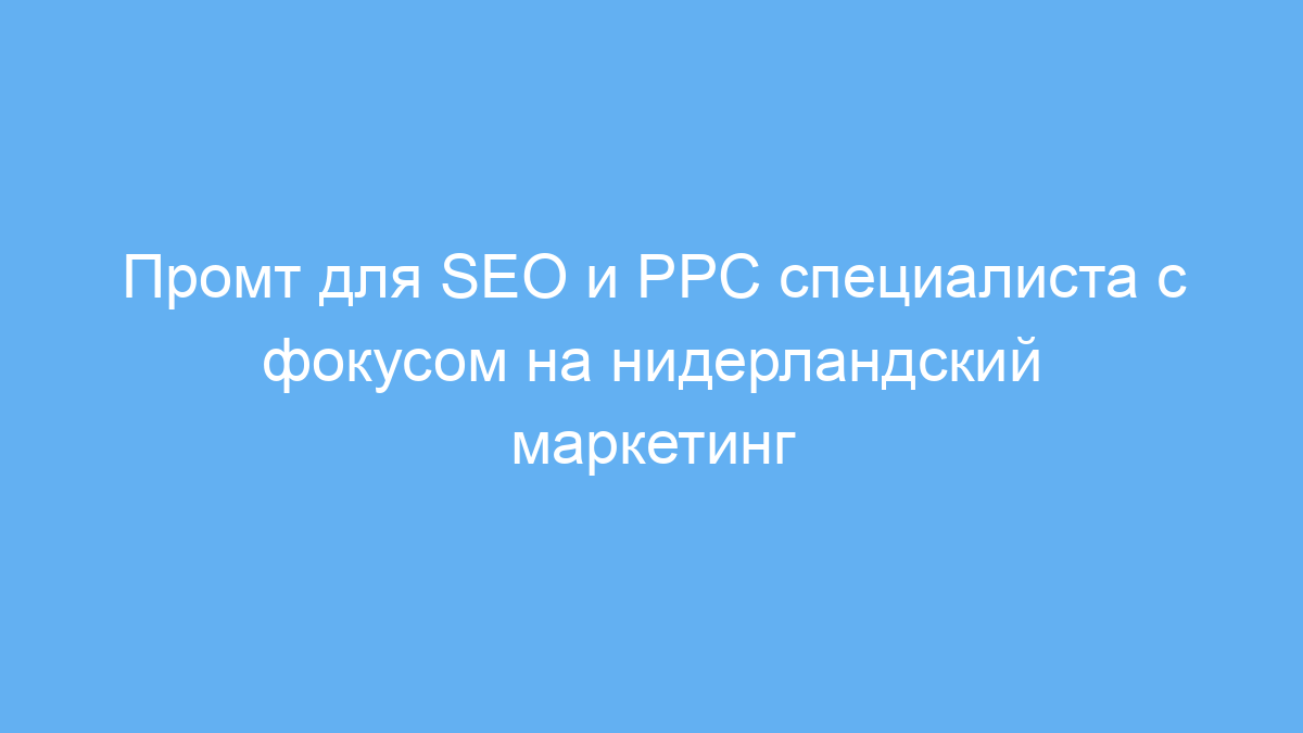Для максимальной пользы вводите этот промт при работе с нейросетью, когда нужна помощь в комплексной оптимизации маркетинговых и рекламных задач, связанных с нидерландским рынком.