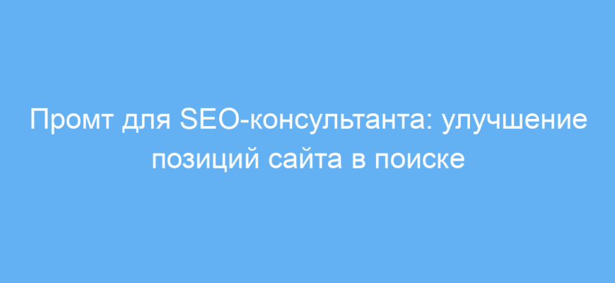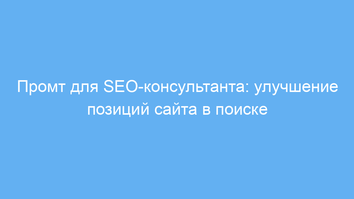 С помощью промта пользователь может получить структурированные советы по основным аспектам SEO: от подбора ключевых слов до технической оптимизации и анализа конкурентов. Промт работает как персональный консультант по SEO, который подстраивается под конкретные цели и нишу пользователя, объясняя все просто и доступно.