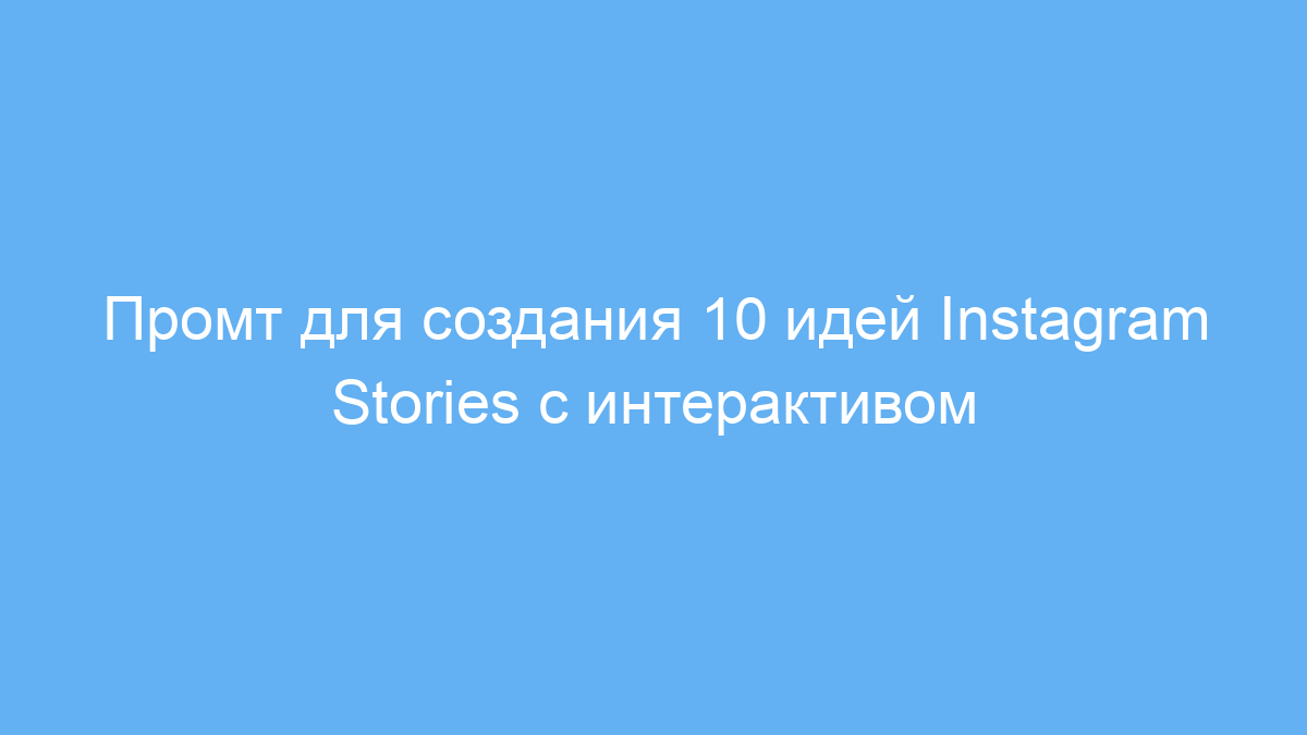 Промт работает просто: вы вводите тематику — продукт или событие — а нейросеть генерирует конкретные идеи с предложениями по интерактиву. Это помогает структурировать контент и сделать его более привлекательным для подписчиков.
