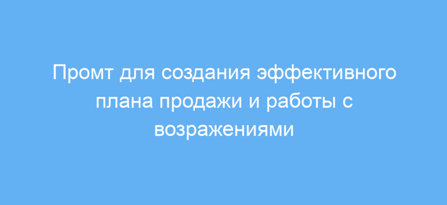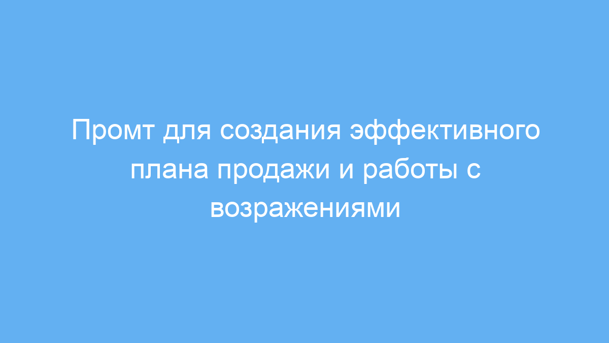 Этот промт помогает структурировать информацию о вашем продукте и клиентских возражениях, а также разрабатывает понятный и рабочий план продаж с конкретными фразами. Это значительно упрощает работу с клиентами и повышает эффективность закрытия сделок.