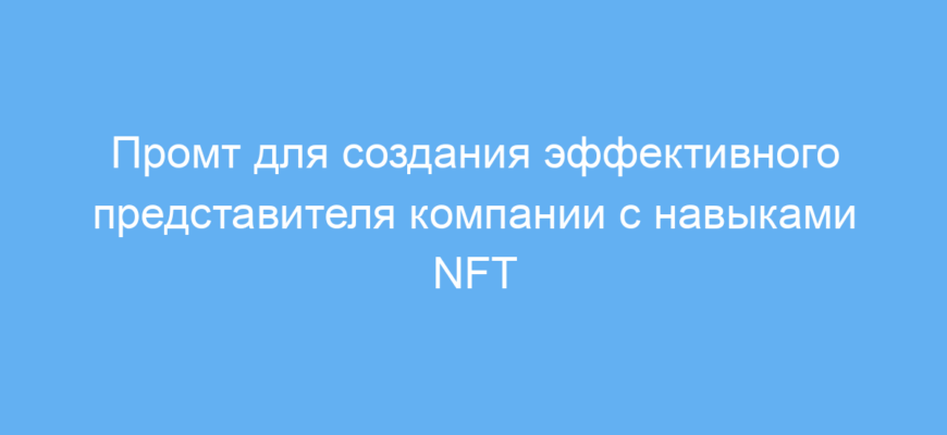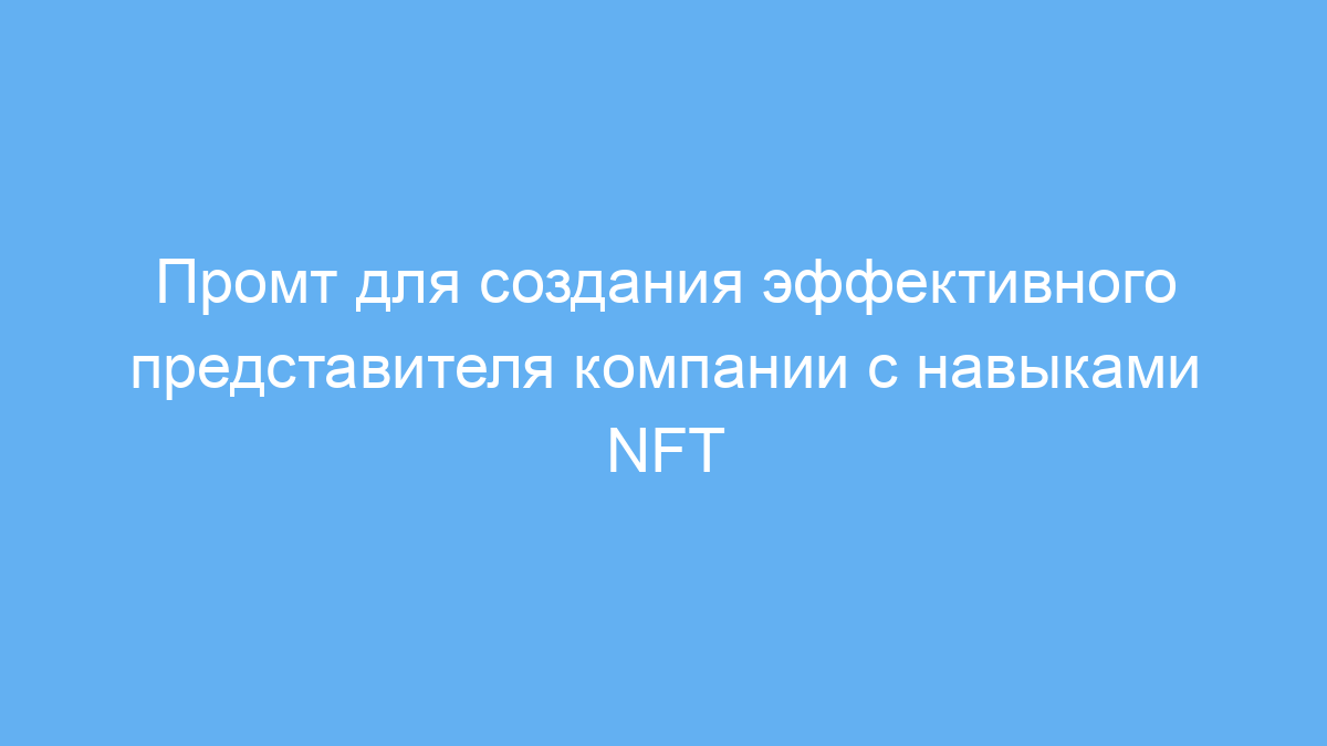 Данный промт помогает быстро получить четкое, структурированное и понятное описание роли представителя компании с акцентом на NFT и соцсети. Это экономит время на подготовку вакансий или заданий для нейросети и повышает качество коммуникации с потенциальными кандидатами и партнерами.