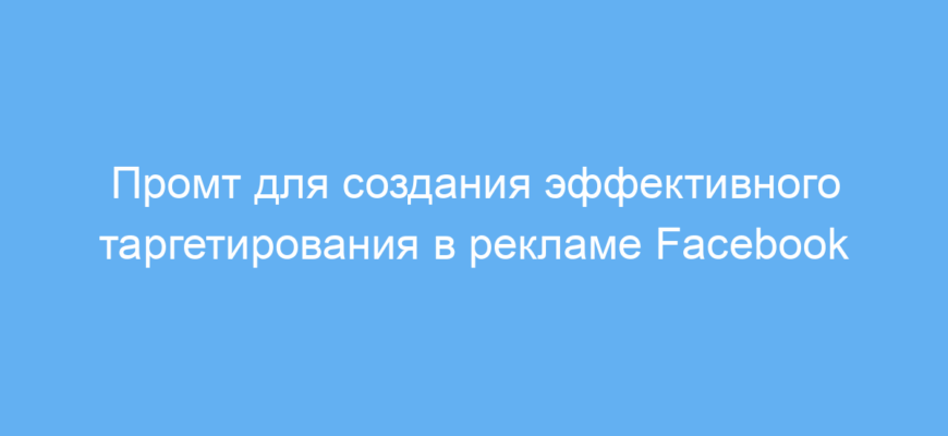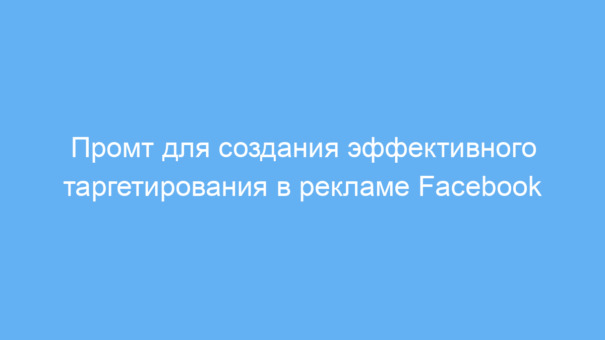 Использование данного промта экономит время и силы при создании таргетированной рекламы в Facebook. Он помогает сформировать чёткое представление об аудитории, разбирается в её поведении и предлагает самые подходящие форматы объявлений для максимальной отдачи от рекламной кампании.