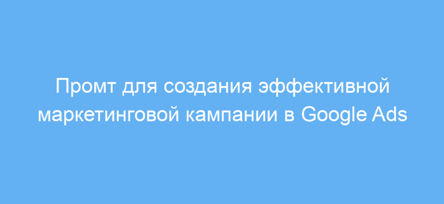 Этот промт предназначен для маркетологов, владельцев бизнеса, контент-менеджеров и всех, кто занимается рекламой в интернете. Он помогает быстро и качественно создать маркетинговую кампанию для Google Ads, учитывая уникальные характеристики и преимущества продукта.