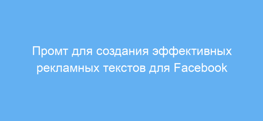 Этот промт значительно экономит время и силы на создание эффективных рекламных текстов для Facebook. Он помогает быстро адаптировать объявления под разные темы и повышать продажи благодаря привлекательному и целевому контенту, созданному специально для социальной сети.