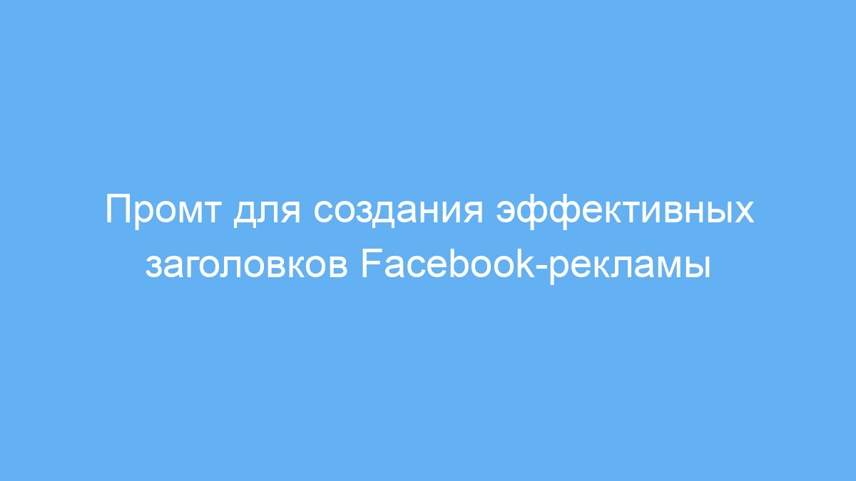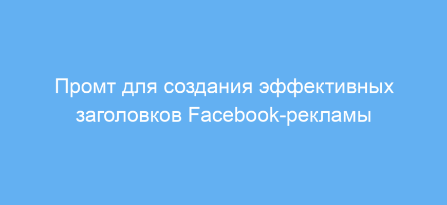 Работа промта проста: пользователь вводит название компании или продукта и краткое описание, а нейросеть генерирует привлекательный и релевантный заголовок для Facebook-рекламы. Такая автоматизация облегчает работу и помогает получать оригинальные варианты текстов для тестирования рекламных кампаний.