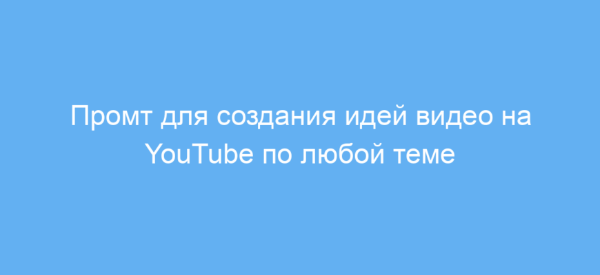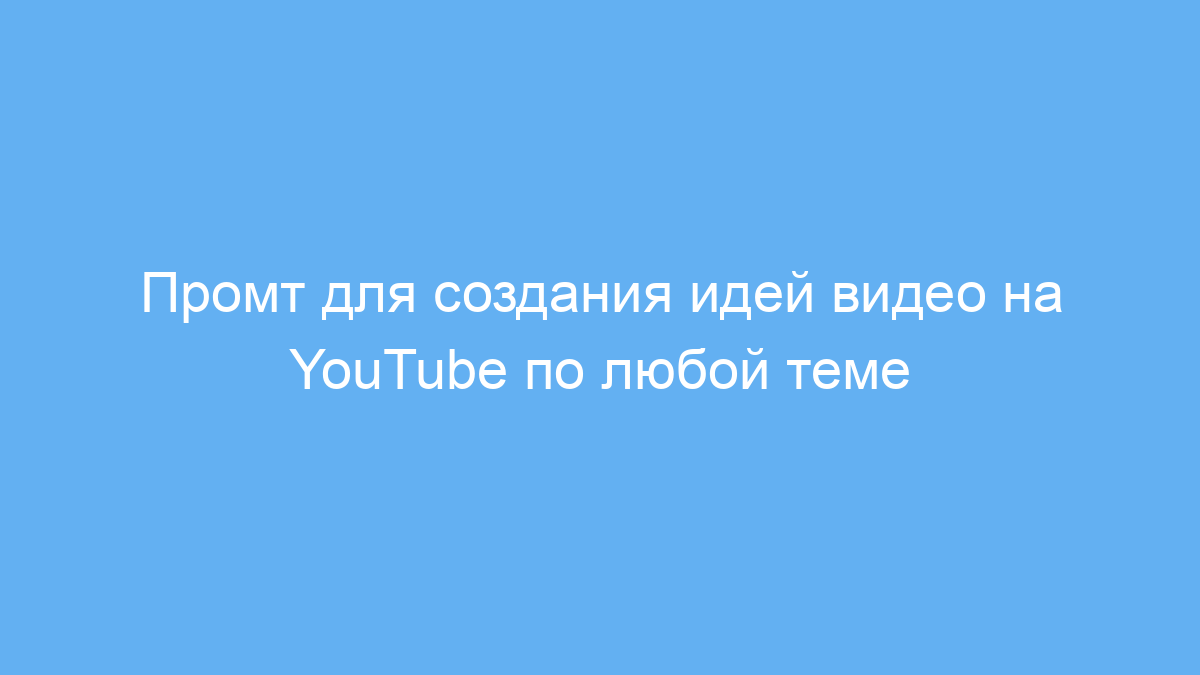 Этот промт предназначен для блогеров, маркетологов и контент-мейкеров, которым нужно быстро и эффективно придумать интересные идеи для видео на YouTube. Если вы хотите разнообразить контент, привлечь новую аудиторию или ищете вдохновение для съемок — этот инструмент будет очень полезен.