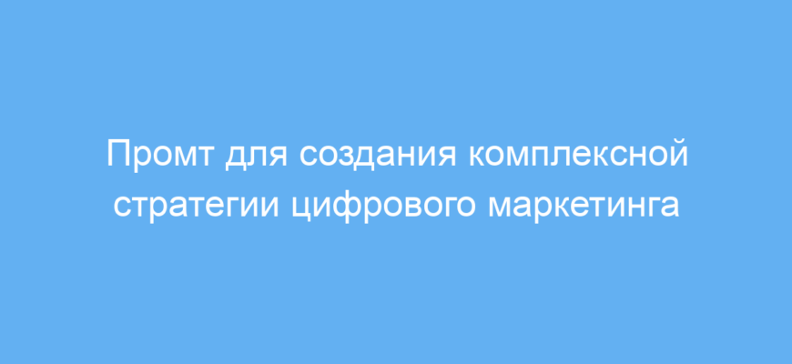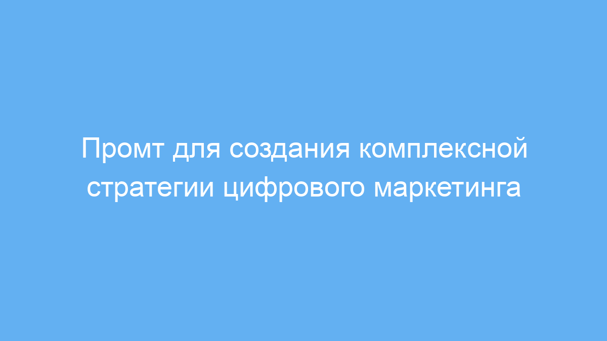 Этот промт необходим маркетологам, предпринимателям и специалистам по digital, которые хотят быстро получить подробный план цифрового маркетинга для своей отрасли или ниши. Он помогает составить ясную и структурированную стратегию, учитывающую особенности целевой аудитории и современные технологии.