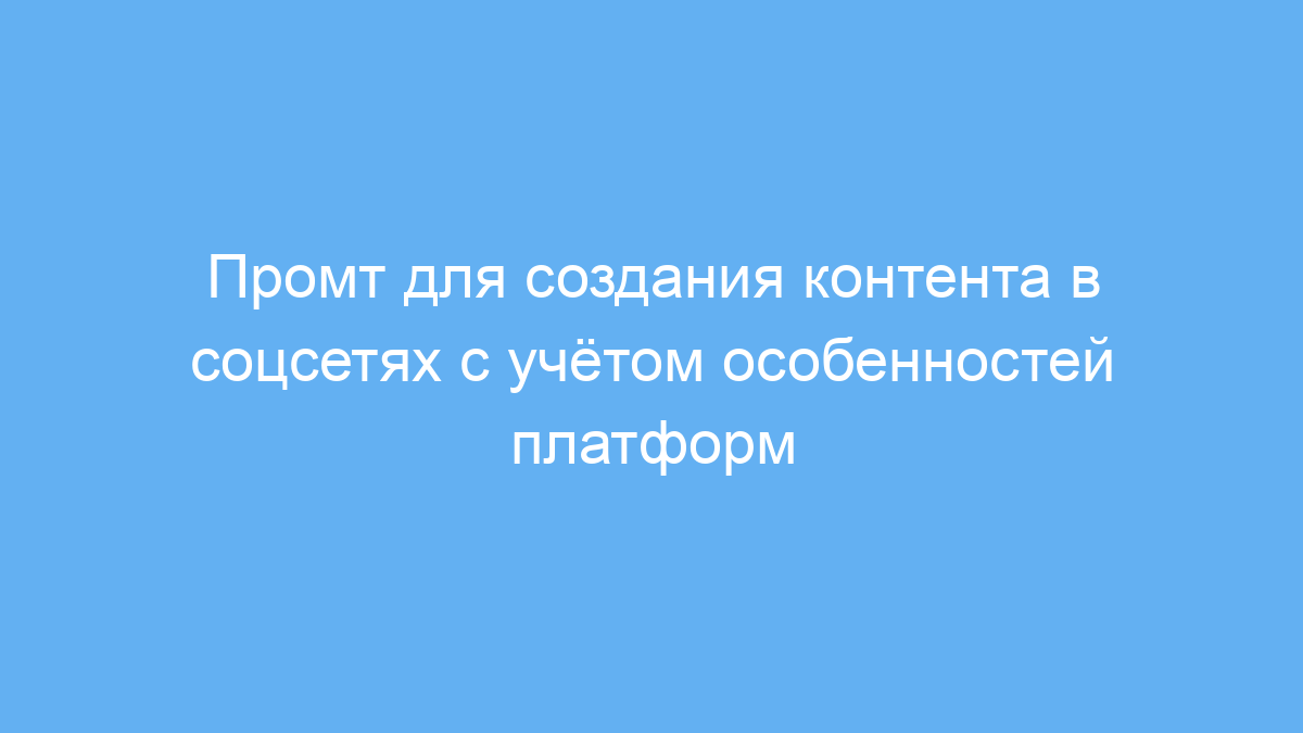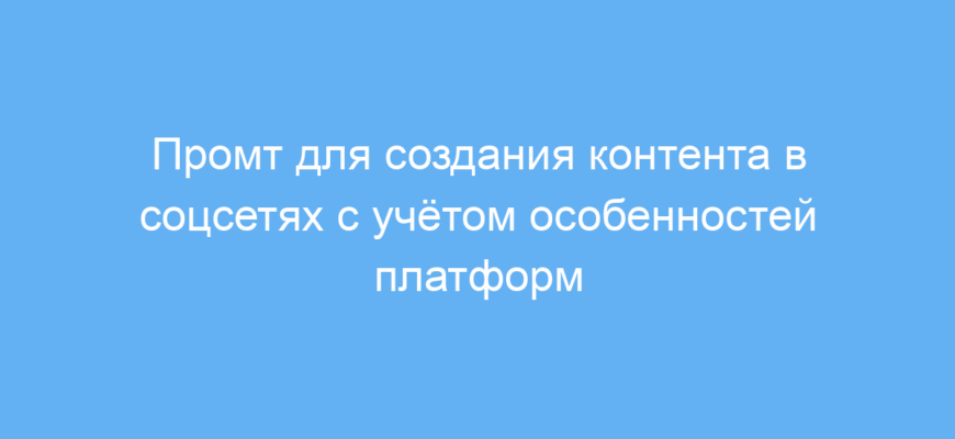 Использование данного промта позволяет быстро получать готовый и адаптированный под разные соцсети контент, что значительно экономит время и упрощает работу с социальными медиа. Это удобно, когда нужно одновременно вести несколько аккаунтов и сохранить при этом высокое качество и релевантность публикаций.