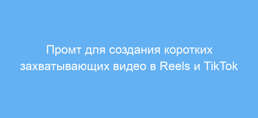 Этот промт предназначен для влиятельных создателей контента в соцсетях, особенно в форматах Reels и TikTok. Если вы хотите быстро и эффективно создавать короткие видео с советами или полезной информацией, этот шаблон поможет структурировать ваш сценарий.