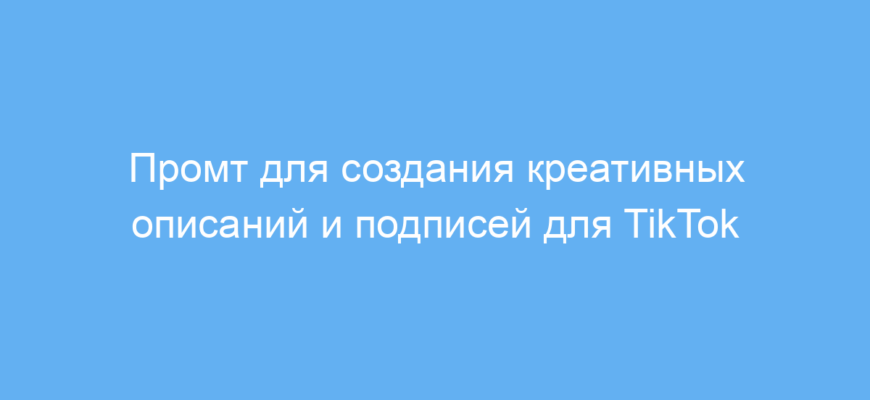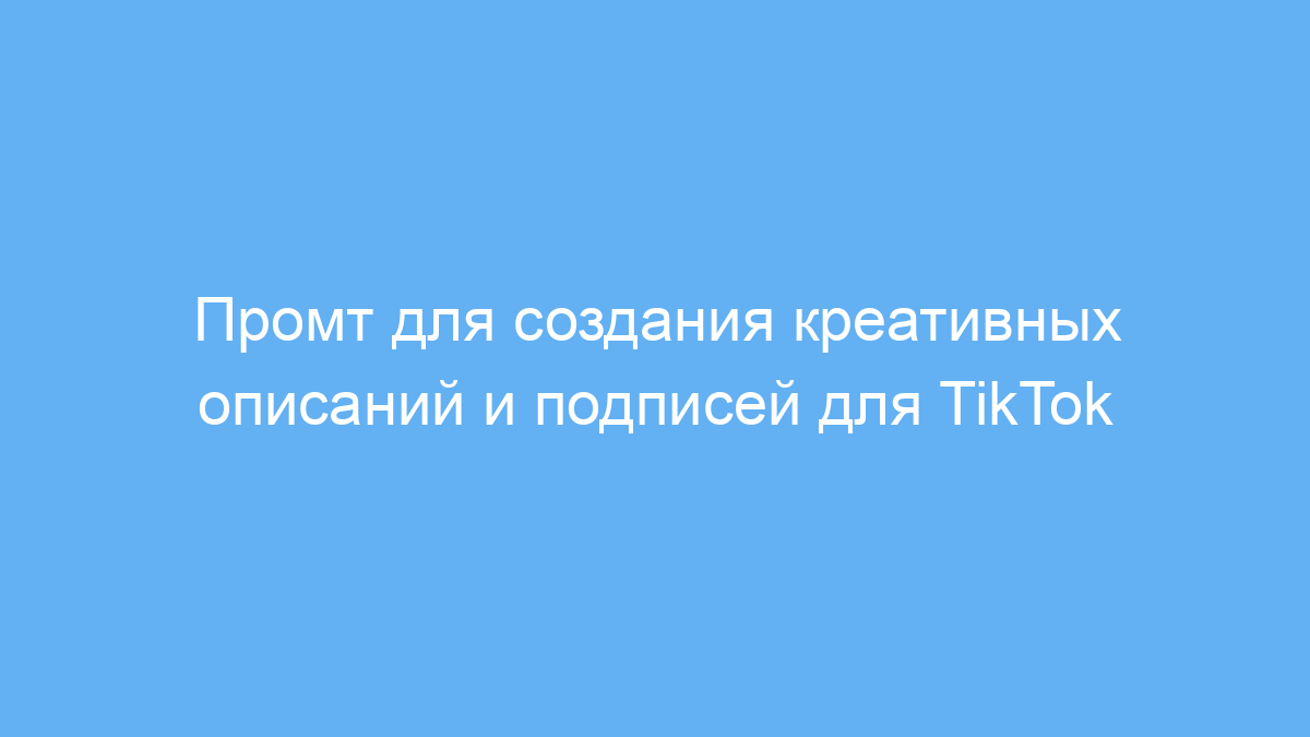 Этот промт создан для специалистов по контенту, маркетологов и авторов, которые хотят быстро и качественно создавать привлекательные описания и подписи к видео в TikTok. Главная задача промта — помочь сделать тексты яркими, запоминающимися и ориентированными на актуальную аудиторию платформы.