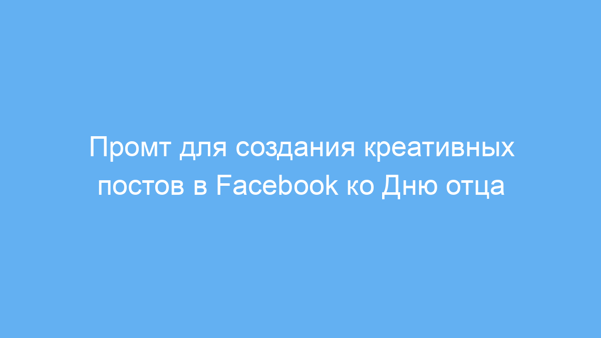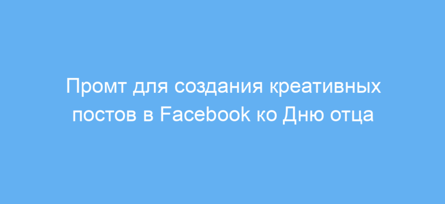 Этот промт предназначен для маркетологов, владельцев бизнеса и SMM-специалистов, которым необходимо быстро и эффективно создавать креативный контент для социальных сетей. В частности, он поможет разработать интересные и цепляющие посты для рекламы сезонных акций — например, скидок ко Дню отца.