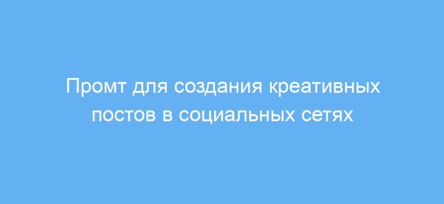 Основная задача промта — облегчить процесс написания социальных публикаций, сократить время на поиск идей и сделать контент более привлекательным и понятным для подписчиков. Благодаря встроенному запросу с примерами можно сохранить стиль и тональность, что важно для узнаваемости бренда или личного аккаунта.