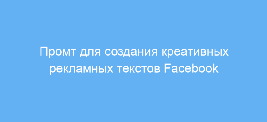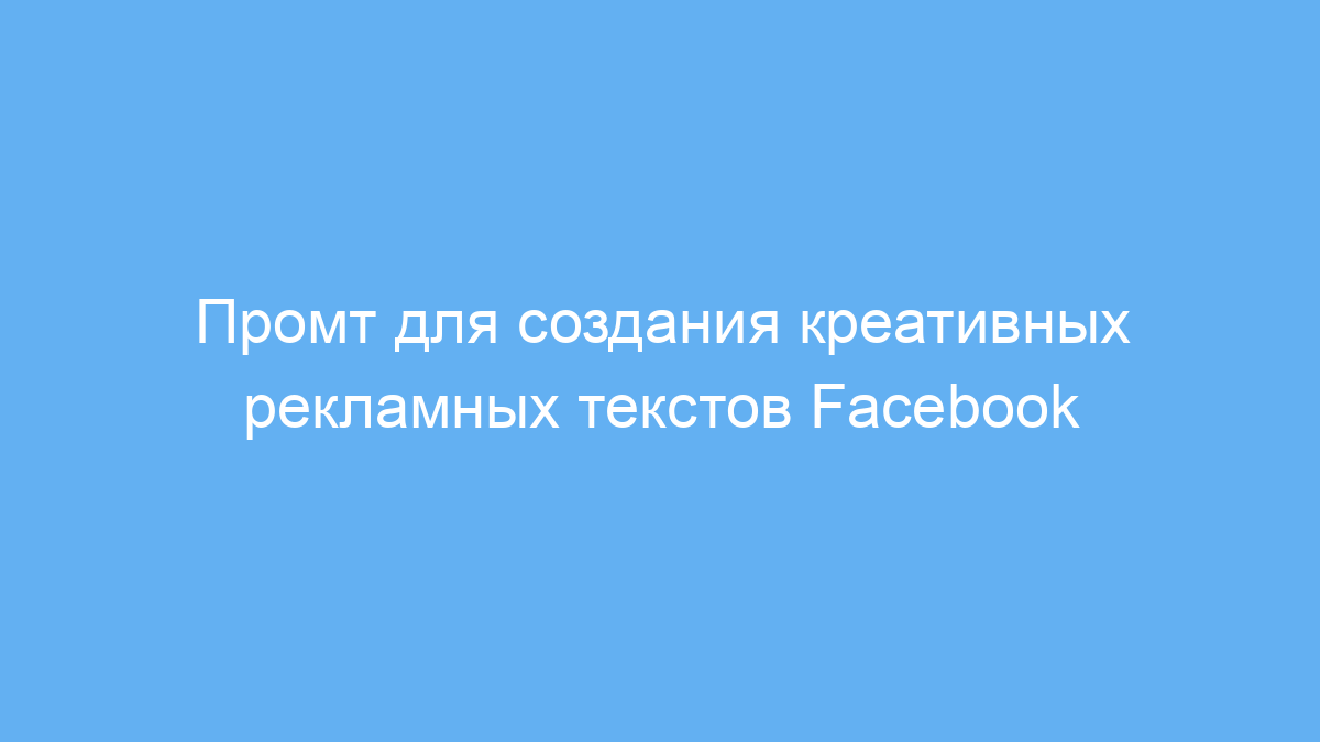 Этот промт позволяет быстро создавать качественные и целевые рекламные тексты для Facebook, экономя время на генерацию креативов и помогая повысить эффективность маркетинговых кампаний. Он учитывает актуальные тренды цифрового маркетинга и способен адаптироваться под разные бизнес-модели и аудитории.