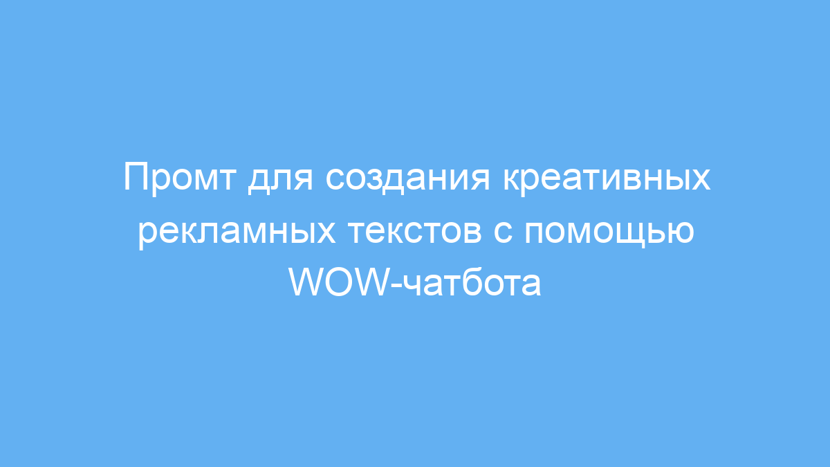 Чтобы получить максимальный эффект от работы с этим промтом, сначала чётко сформулируйте проблему или задачу вашей рекламной кампании. Чем конкретнее будет запрос, тем точнее WOW сможет подобрать эффективные стратегии.