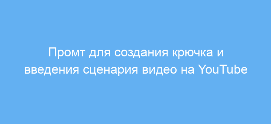 Этот промт экономит время и силы, помогая быстро создать захватывающее начало видеоролика. Он упрощает работу с контентом, повышает вовлечённость аудитории и делает сценарий более структурированным и профессиональным.