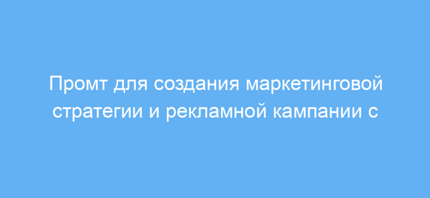Данный промт позволяет быстро и структурировано сформировать полный план рекламной кампании, опираясь на ключевые маркетинговые аспекты. Он экономит время, избавляет от «пустых» попыток и помогает получить много идей от нейросети для создания эффективной стратегии продвижения. Использование промта подходит как для новичков, так и для профессионалов, работающих с брендами разного масштаба.