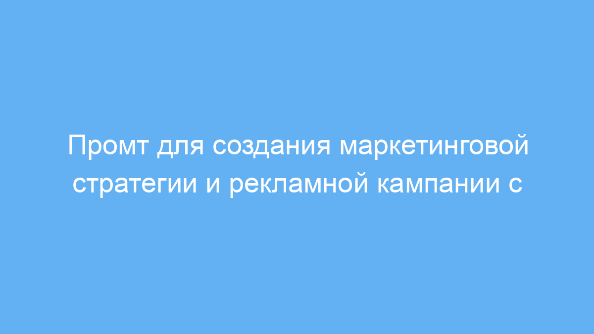 Этот промт предназначен для маркетологов, предпринимателей, менеджеров по рекламе и всех, кто хочет быстро и качественно разработать уникальную рекламную кампанию с помощью нейросети. Использование промта поможет решить задачу создания комплексной стратегии продвижения, включая определение целевой аудитории, разработку ключевых сообщений, выбор слоганов и каналов продвижения, а также формирование визуального стиля и инновационных решений.