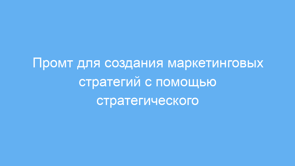 Промт облегчает создание полноценных маркетинговых стратегий на базе системного анализа клиентского опыта. Он быстро выстраивает идеи для конкретных бизнес-задач и выявляет новые возможности для роста. Это экономит время и помогает работать с маркетингом системно и конкретно.