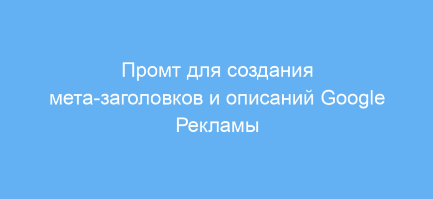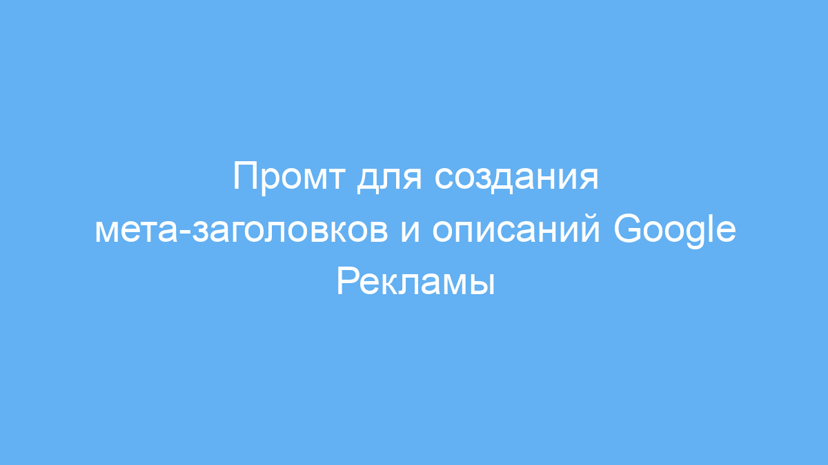 Этот промт ускоряет создание качественных мета-заголовков и описаний, которые отвечают требованиям Google Рекламы и эффективно привлекают внимание целевой аудитории. Он помогает избежать ошибок по длине текстов и излишнего повторения ключевых слов. Благодаря гибкости и простоте настройки этот инструмент пригодится маркетологам, копирайтерам и владельцам бизнеса.